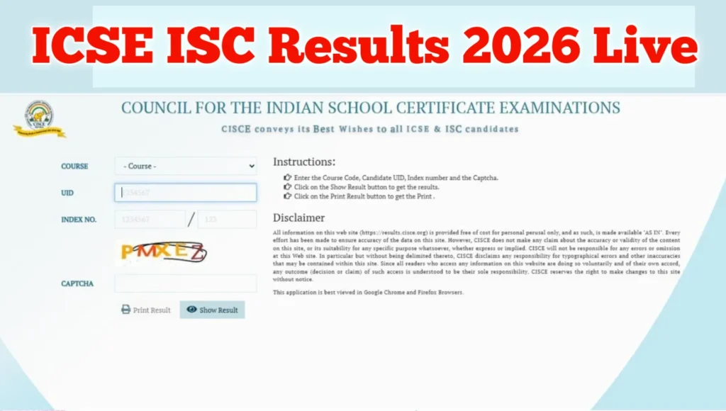 | ICSE ISC Class 10th 12th Result 2026 Link | Click Here ACTIVE On 30 April At 11 Am |