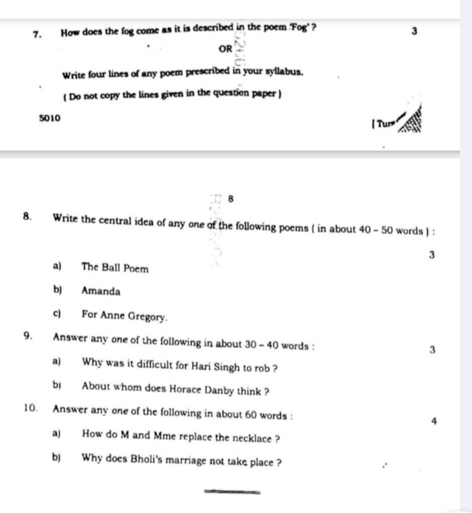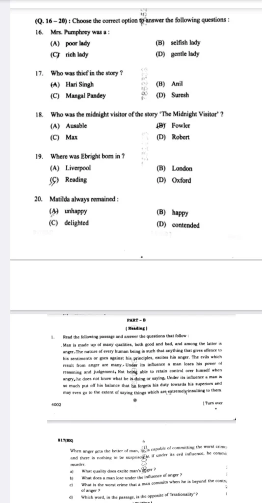 अंग्रेजी पेपर में पूछे जाने वाले अनुमानित महत्वपूर्ण प्रश्न कुछ इस प्रकार से हो सकते हैं जो नीचे निम्नवत दी गई है-